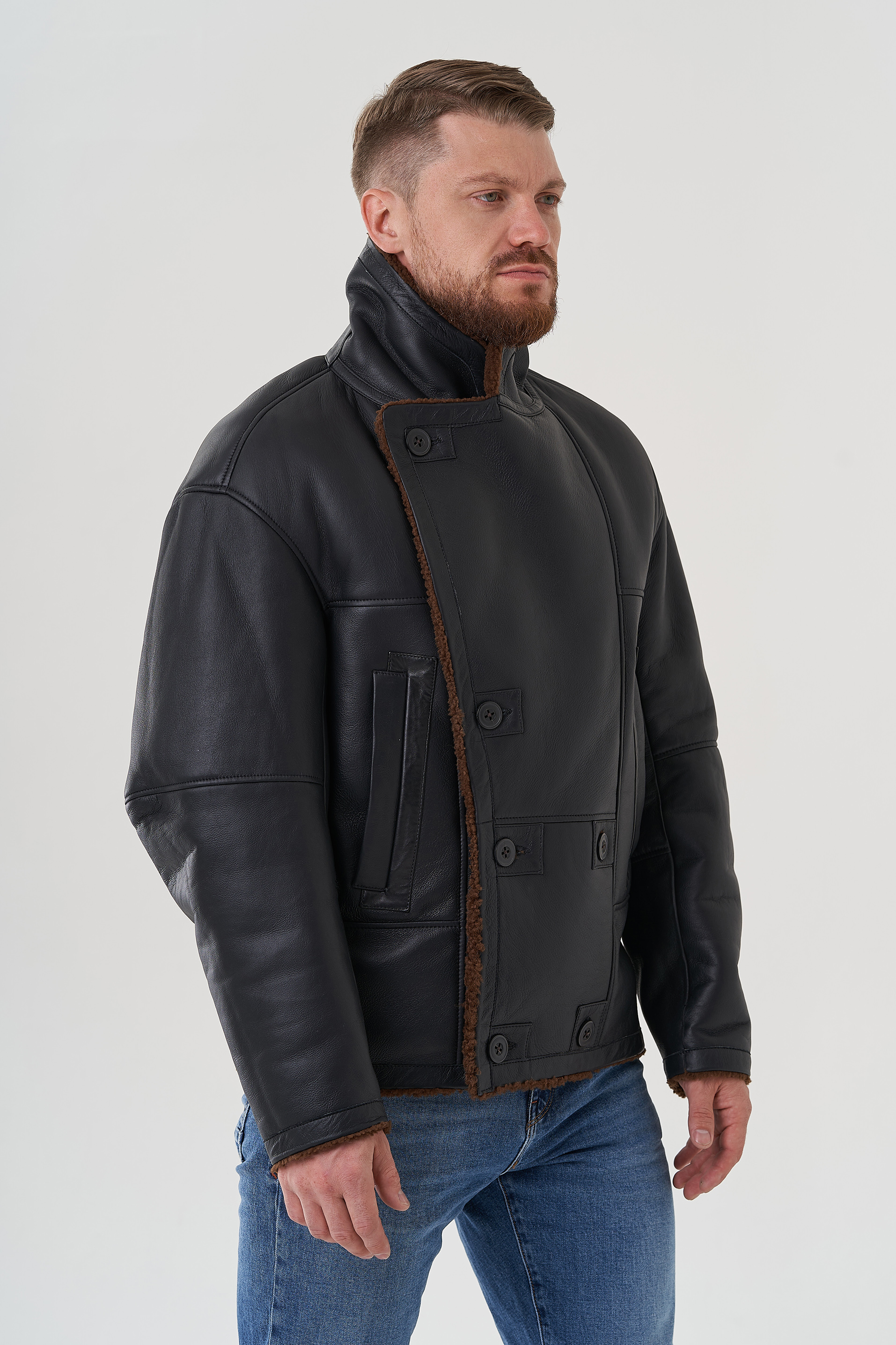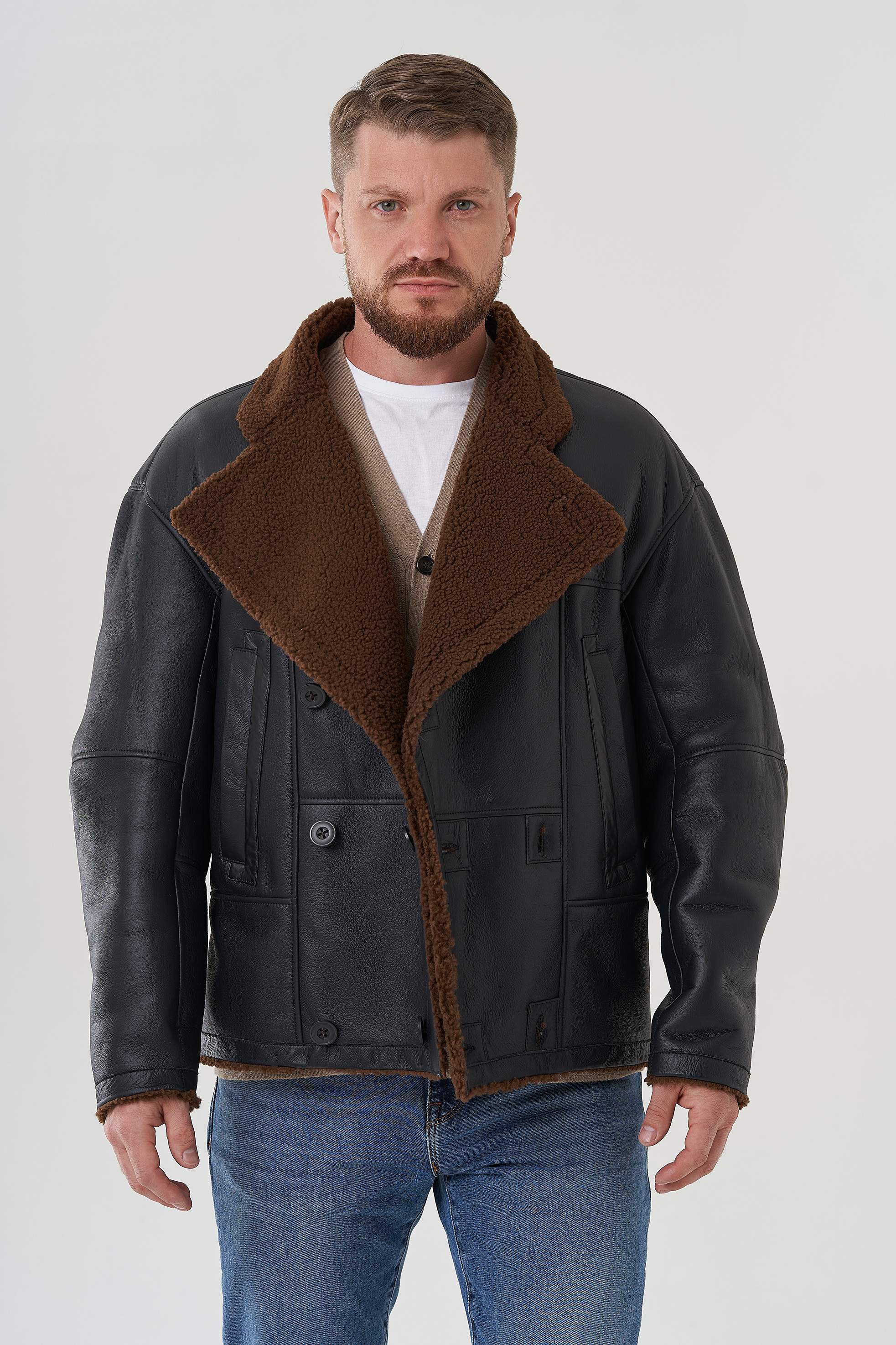 Тип ворота - английский воротник , отделка овчина мерино, цвет - коричневый